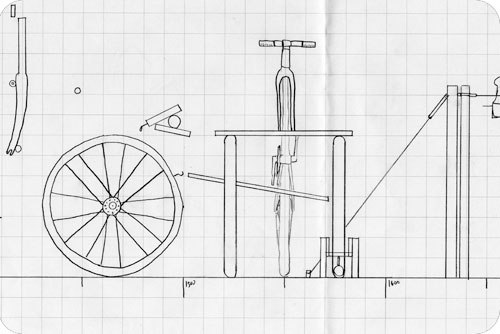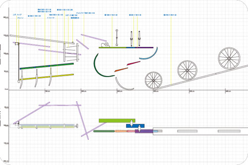 この装置を自転車の部品を使って制作し、イベント期間中の2日間で、装置を組み立て、運動の連鎖を公開撮影します。